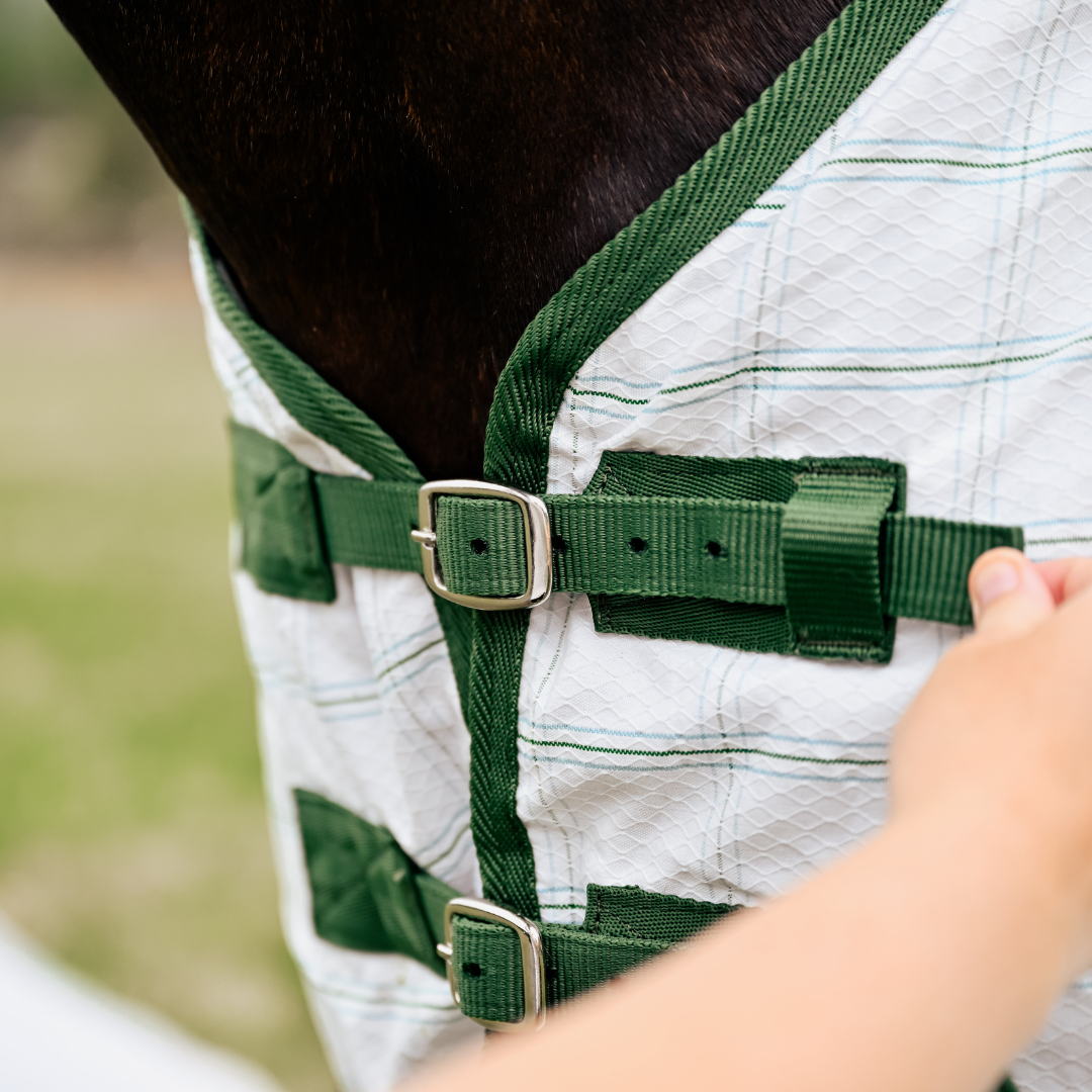 - Three Neck Rug Buckles: Adjustable for a custom fit around the neck area.