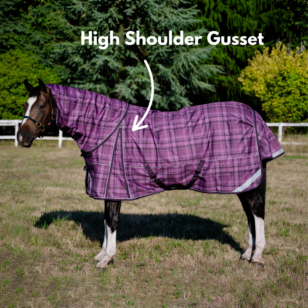 - High Shoulder Gusset: Specifically placed to offer greater freedom of movement and an excellent fit on a wide range of horse shapes from broad to narrow.